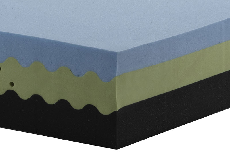 strato superiore: originale ViscoGel IKOOL e microsfere in bioceramica. strato centrale: Visco Memory (D85 kg/mq).