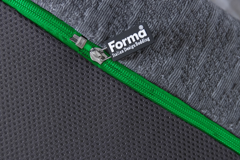 Fascia perimetrale in tessuto stretch goffrato ad elevata traspirabilità con esclusiva lavorazione perimetrale e piping a definirne le linee essenziali.